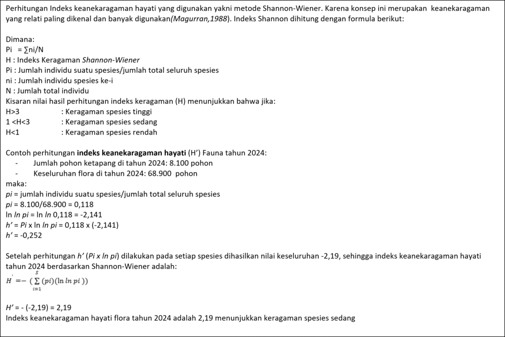 | Indeks Keanekaragaman Jenis (H’) Flora | 2,19 | 2,19 | 2,19 | 2,19 | 2,19 | ||||||||||||||||