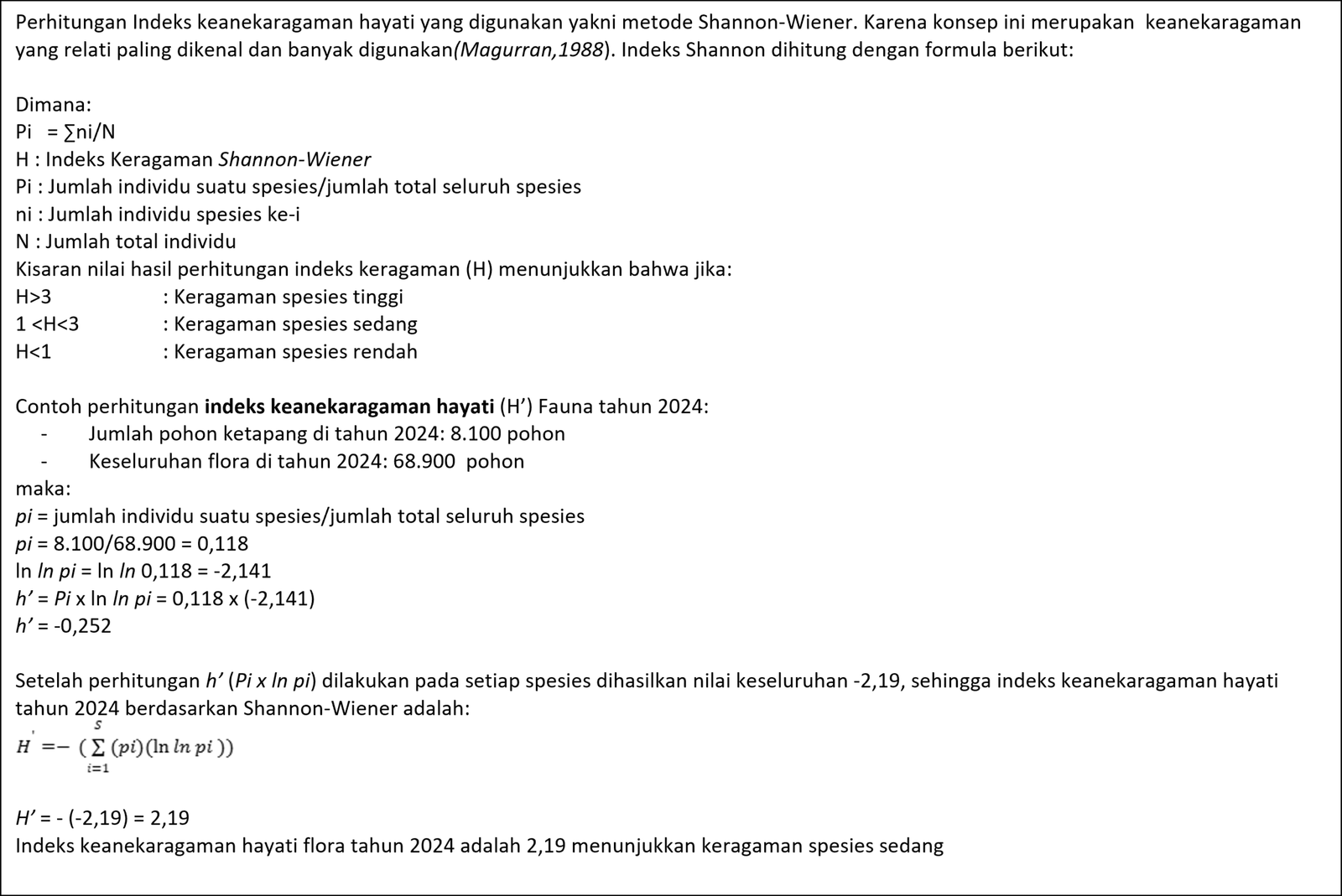 | Indeks Keanekaragaman Jenis Flora (H’) | 2,19 | 2,19 | 2,19 | 2,19 | 2,19 |